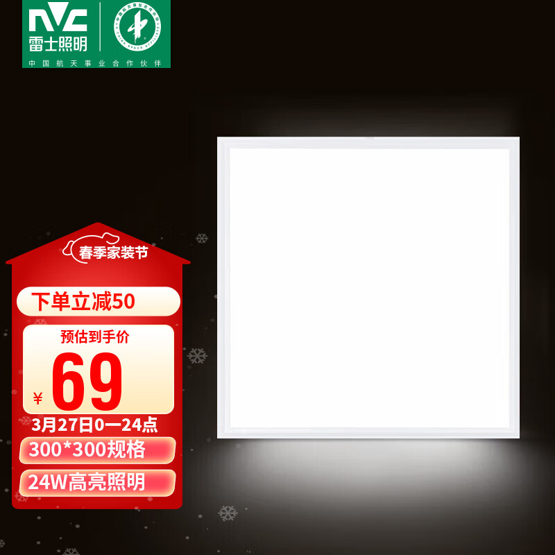 雷士(NVC)厨房灯 led集成吊顶厨卫灯吸顶灯 铝扣板卫生间平板灯 面板灯24W价格:119.00元!