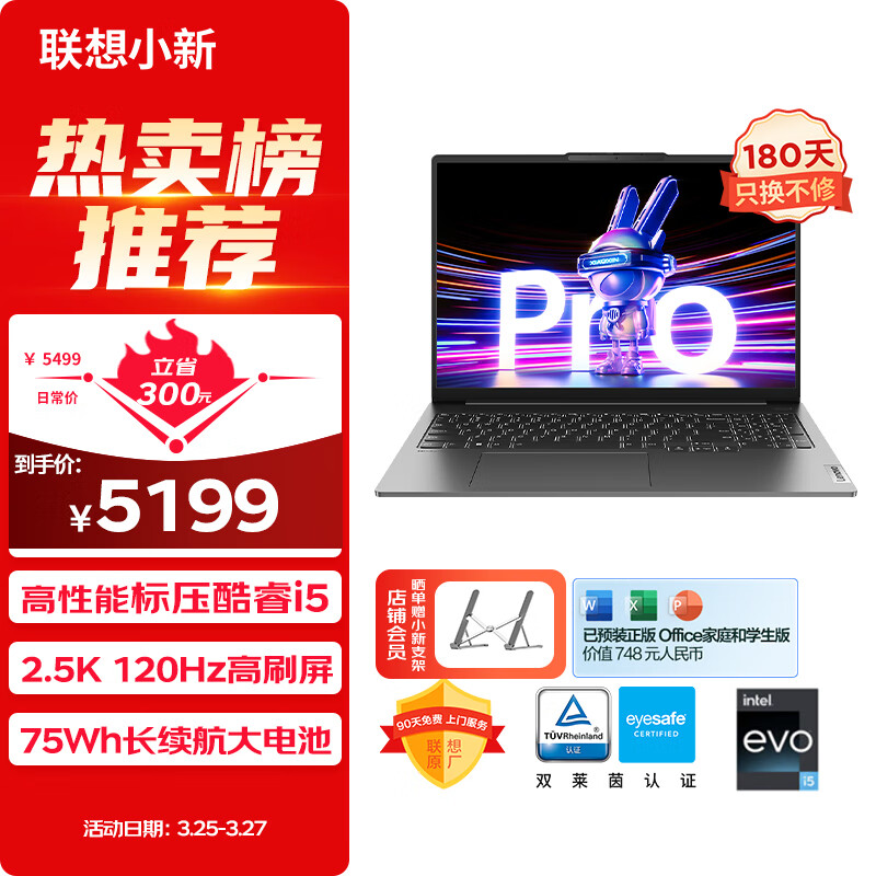 联想笔记本电脑小新Pro16超能本 高性能标压酷睿i5 16英寸轻薄本 16G 1T 2.5K高刷护眼屏 灰 游戏办公价格:5199.00元!