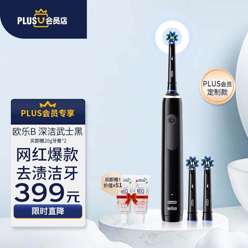 欧乐BXPLUS会员联名款电动牙刷Pro4Ultra武士黑3D声波圆头送男友送女友情侣送礼赠生日礼物乐B黑武士价格:439.00元!