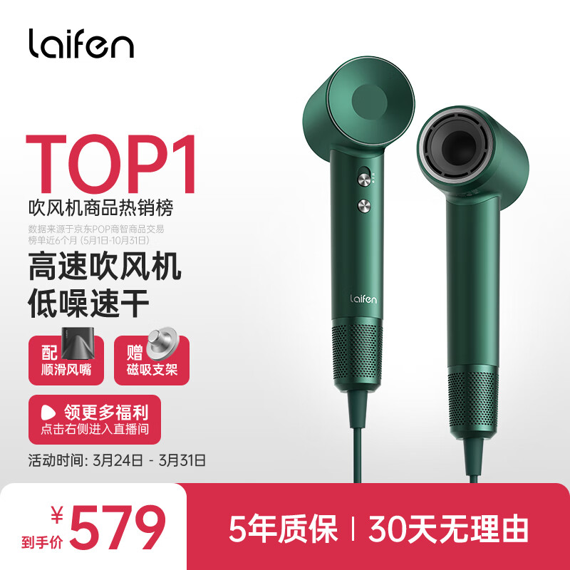 徕芬Laifen 家用吹风机 大功率速干不伤发电吹风 莱芬负离子低噪音吹风筒 LF03绿野价格:900.00元!