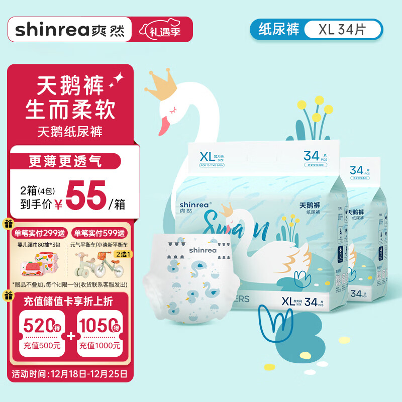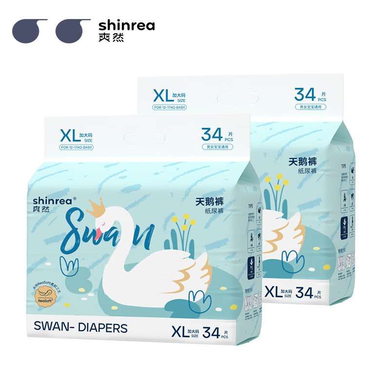 爽然(shinrea)天鹅系列纸尿裤XL68片超薄男女通用婴儿尿不湿价格:100.00元!