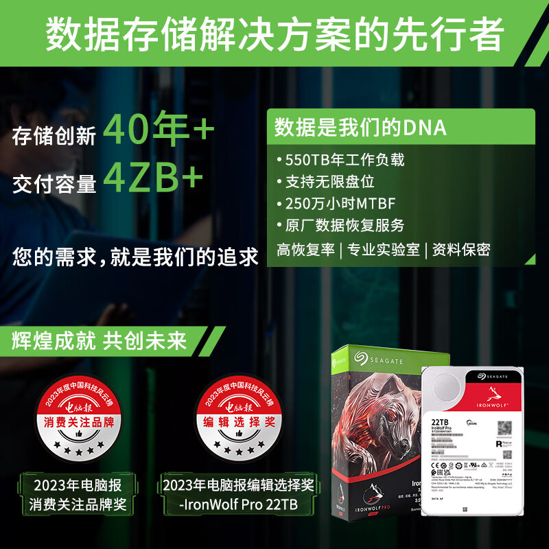 希捷(SEAGATE)NAS硬盘22TB 企业级 512MB 7200转 CMR垂直 SATA 希捷酷狼PRO 机械硬盘 550年负载 数据恢复服务价格:5899.00元!