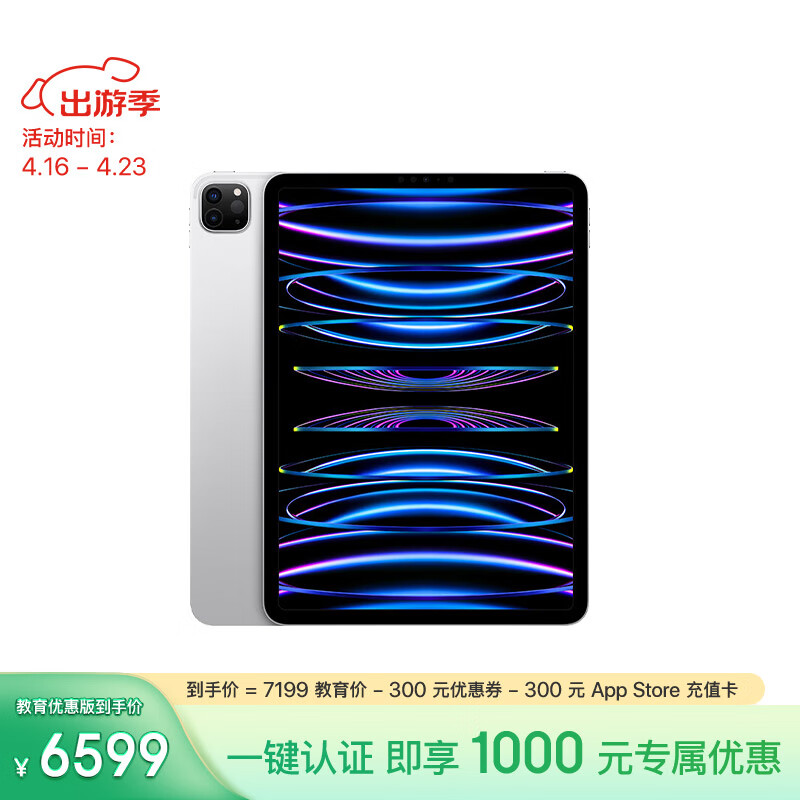 Apple/苹果【教育优惠】iPad Pro 11英寸 2022款(256G WLAN版/M2芯片/MNXG3CH/A)银色价格:7199.00元!
