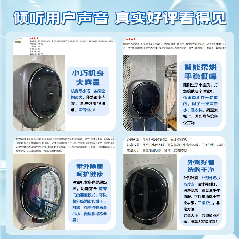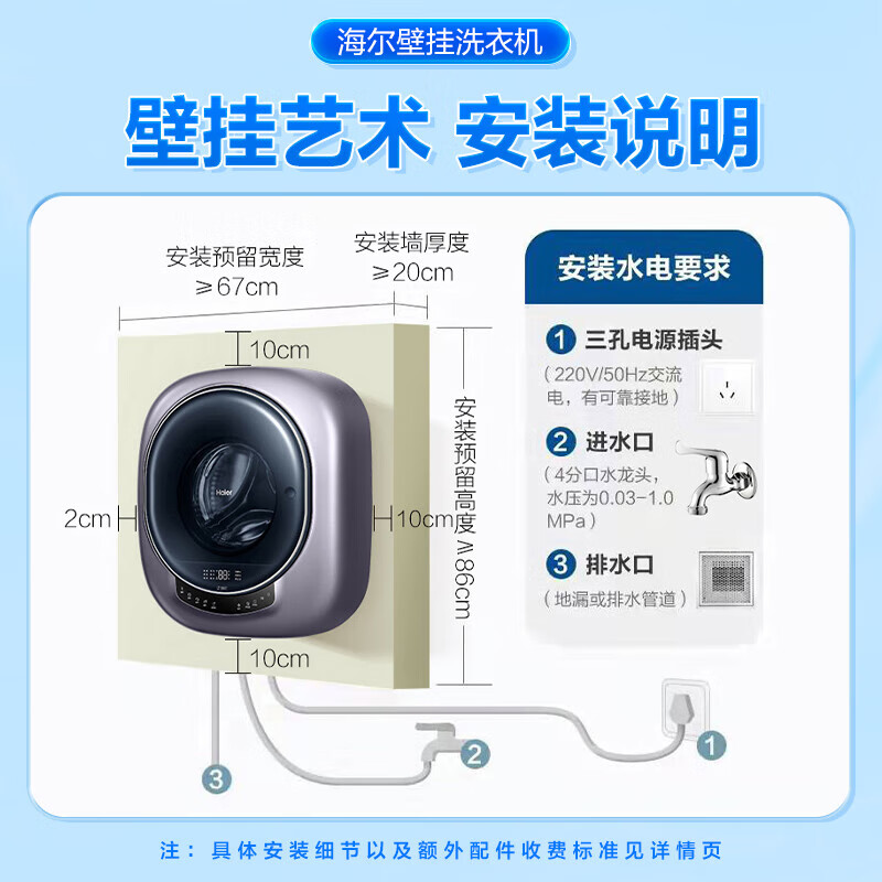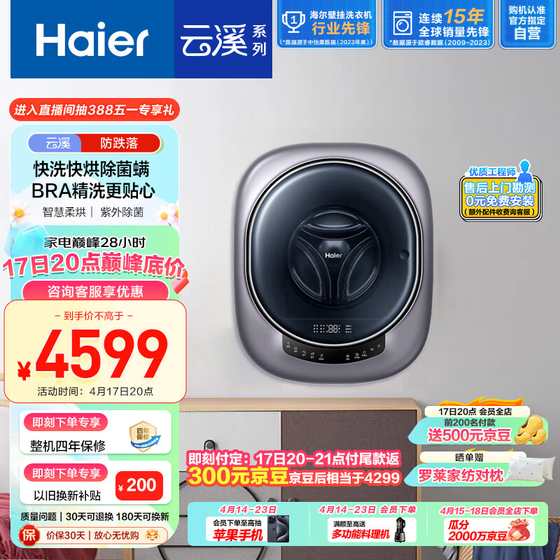 海尔(Haier)云溪系列 壁挂洗衣机 洗衣机小型 内衣洗衣机 洗烘一体全自动 3KG 紫外线除菌 除潮XQGM30-HB718U1价格:4898.00元!