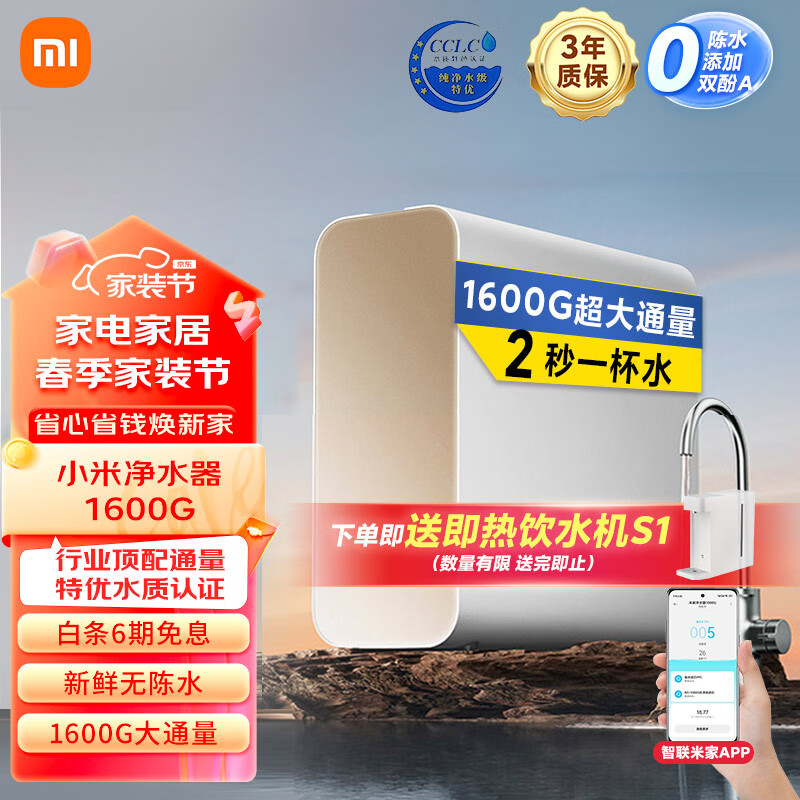 米家小米净水器1600G厨下净水器家用直饮净水机?2秒一杯水 首杯可饮母婴直饮 长效RO滤芯6年免更换价格:3499.00元!