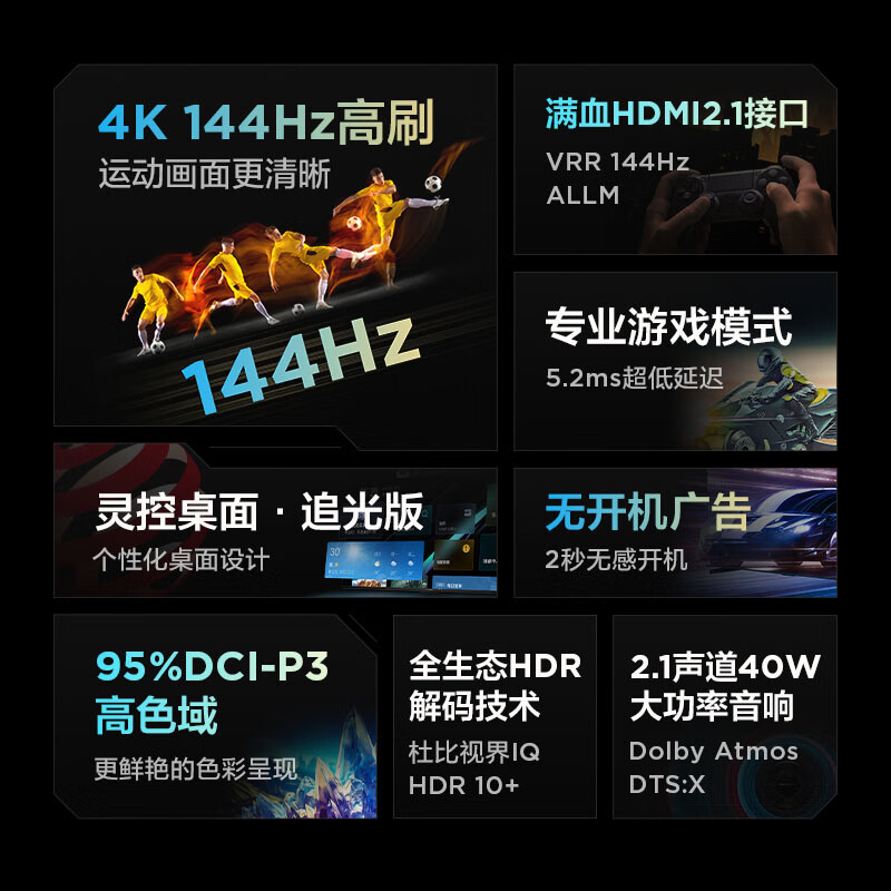 FFALCON雷鸟 鹏7 98英寸游戏电视 144Hz高刷 4K超高清 4+64GB 超薄液晶100平板电视机以旧换新98S575C价格:9999.00元!