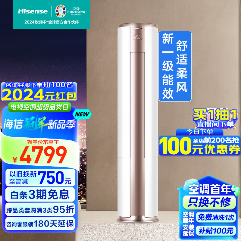 海信(Hisense)3匹 速冷热 舒适柔风 新一级智能变频自清洁客厅空调立式 京东小家智能生态 KFR-72LW/A390-X1价格:4799.00元!