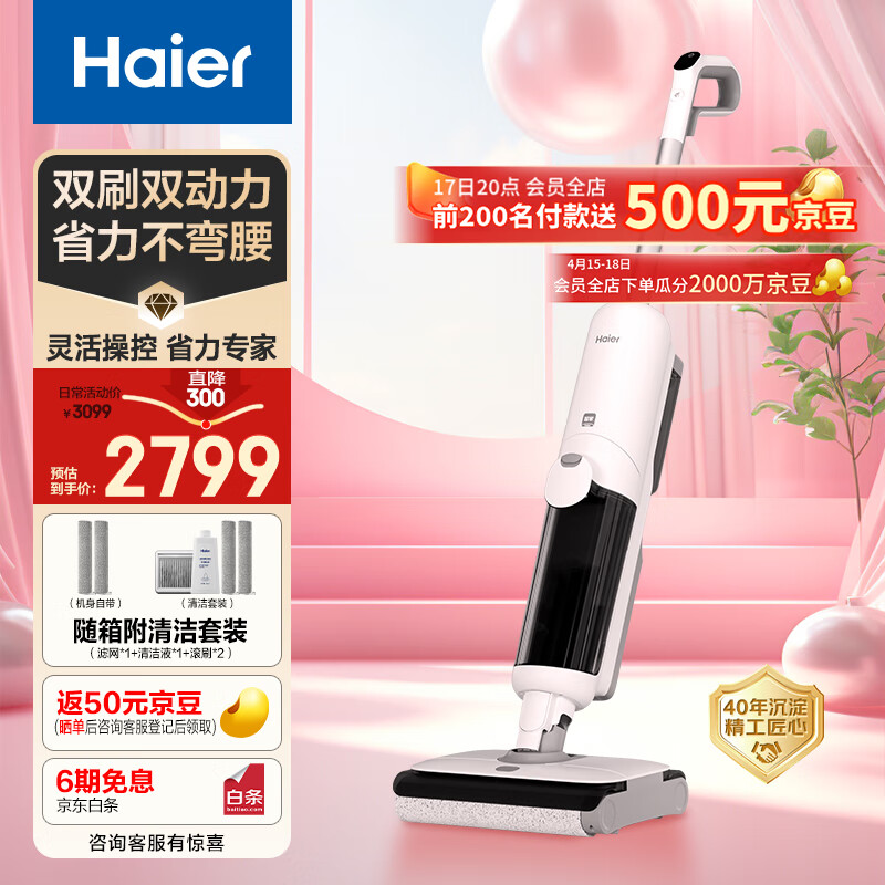 海尔(Haier)无线智能洗地机吸洗拖一体自动清洗全自动拖地机扫地机器人吸尘器家用全链柔烘双刷双动力Z10Pro价格:3099.00元!