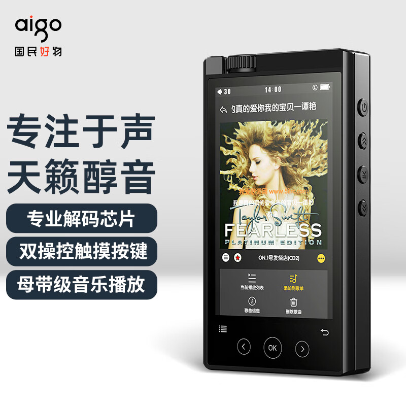 爱国者aigo EROS H05 4.0英寸高清HIFI无损mp3音乐播放器便携DSD解码高解析度学生随身听价格:899.00元!