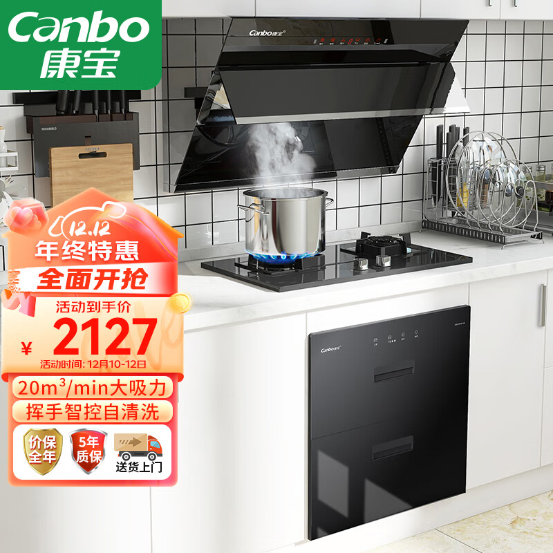 康宝(Canbo)油烟机灶具套装 侧吸式抽油烟机套装 烟灶消套装 三件套 209X+323+EF122(天然气)价格:2127.00元!