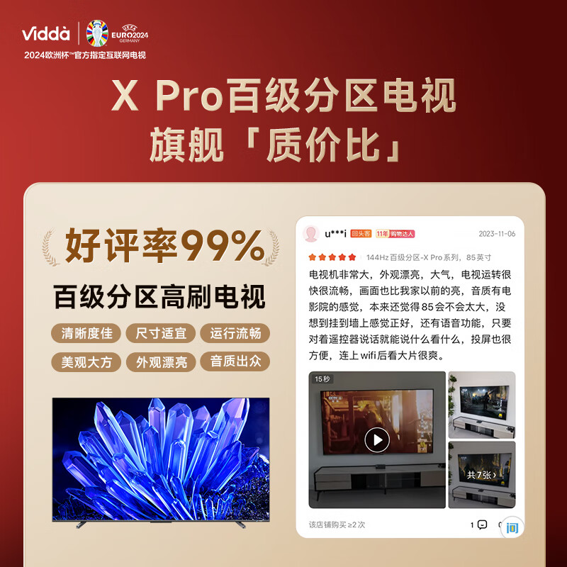 Vidda X85 Pro 海信 85英寸 256分区 144Hz电视机+JBL 5.0 声道一体式回音壁音箱 蓝牙娱乐体验套装价格:8099.00元!
