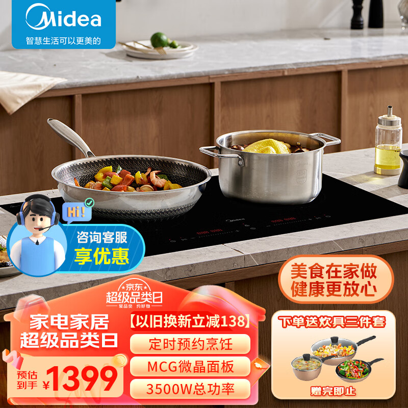 美的(Midea)电磁炉双灶电磁灶 家用大功率3500W恒温匀火嵌入式双头灶 过热保护滑触双控定时功能MC-DZ35CC10Z价格:1399.00元!