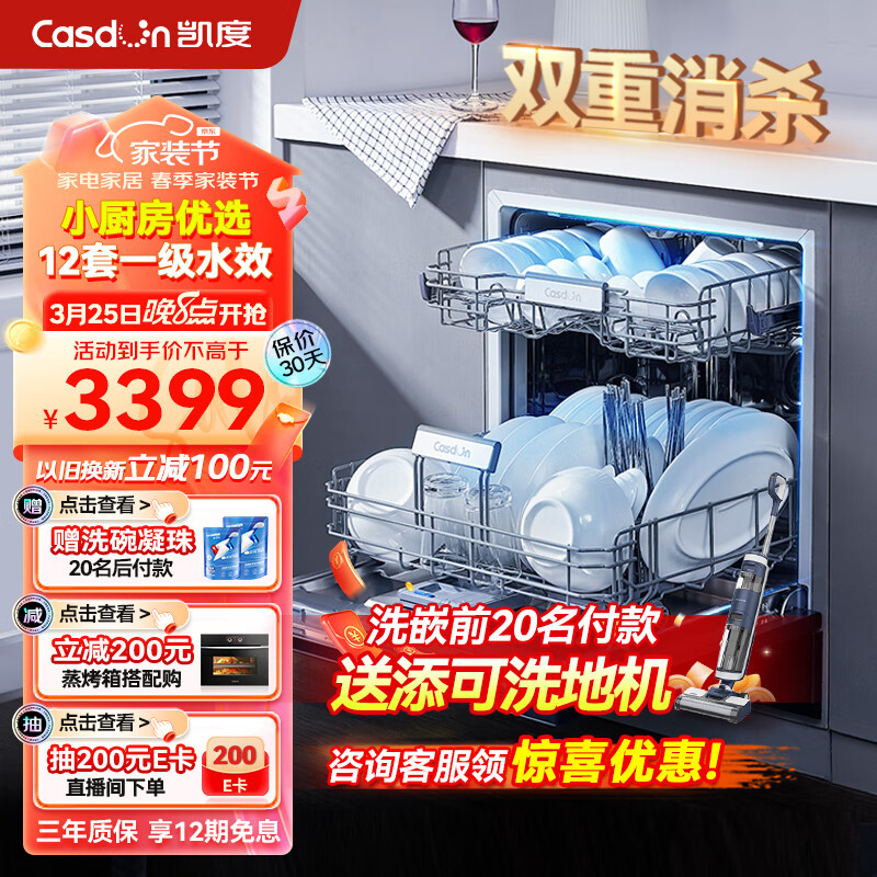 凯度(CASDON)嵌入式 全自动家用烘干独立式智能12套 一级水效 洗碗机 KD12CRR-J6价格:3399.00元!