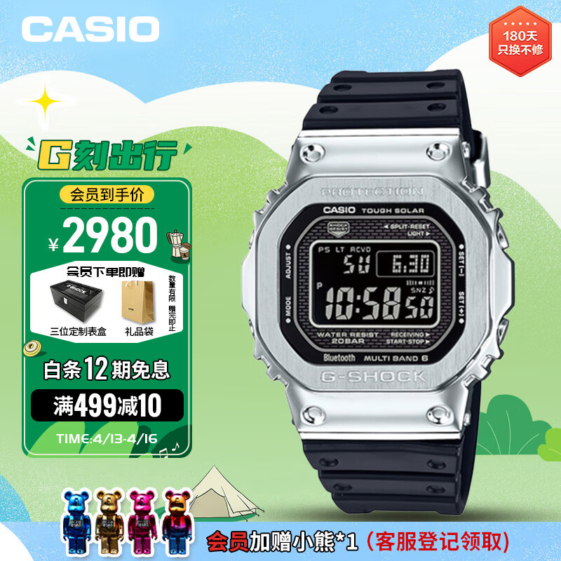 卡西欧(CASIO)手表男士经典小方块G-SHOCK运动电子日韩表礼物GMW-B5000-1价格:2990.00元!