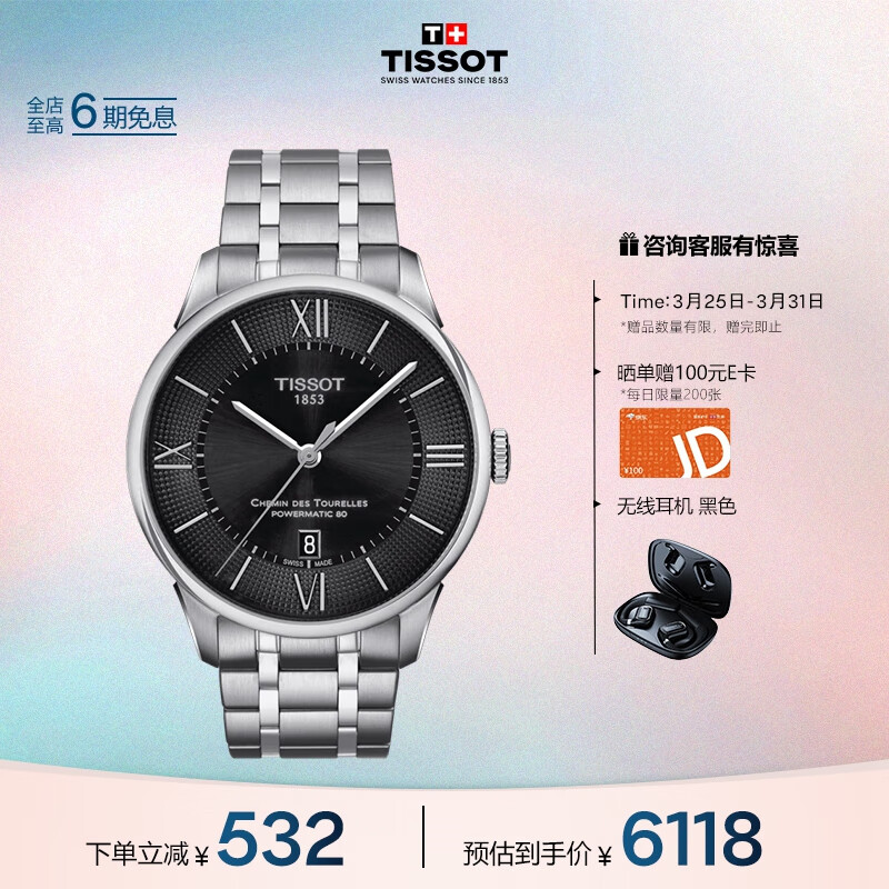 天梭(TISSOT)瑞士手表 杜鲁尔系列腕表 钢带机械男表 T099.407.11.058.00价格:6650.00元!