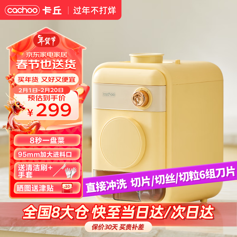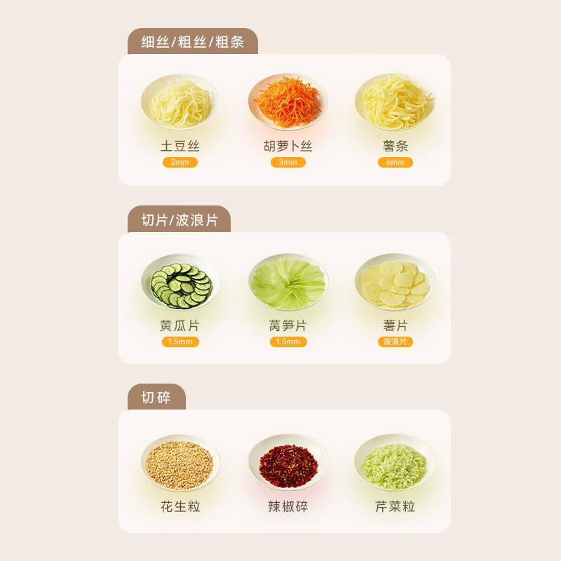 卡丘切菜神器电动切菜机多功能家用自动切菜切肉器大口径切片切丝刨丝器擦丝器【升级配置-五组刀头】 苏梨黄(标配-三组刀头)价格:699.00元!