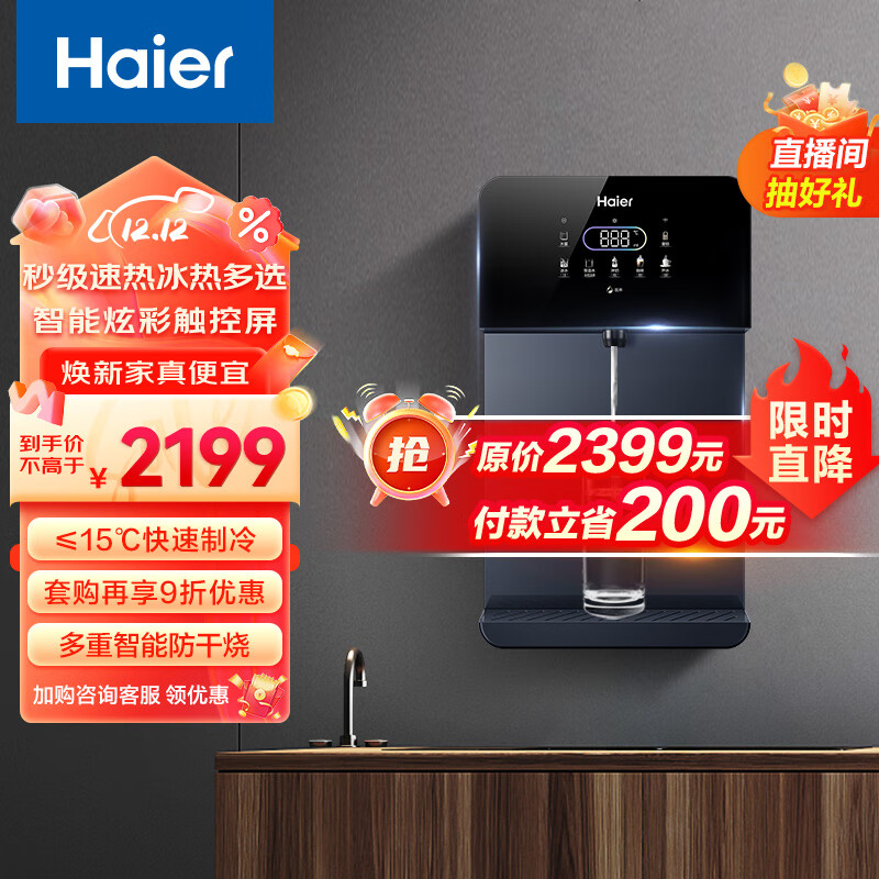 海尔(Haier)家用净水器伴侣管线机秒速加热智能触控定量出水全通量净水器壁挂式饮水机HGD2105B-U1价格:2099.00元!