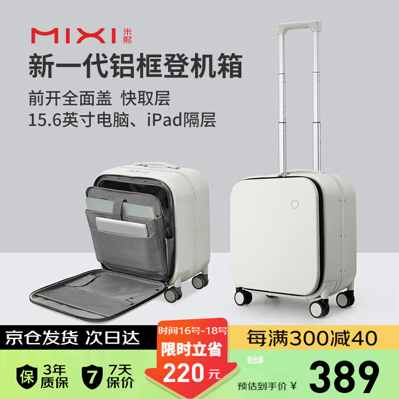 米熙前开盖拉杆箱子登机箱女铝框箱行李箱大容量男旅行箱18英寸烟白60价格:609.00元!