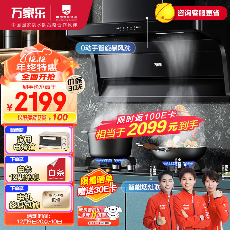 万家乐 抽油烟机顶侧双吸油烟机 7字型烟灶联动套装 23m3/min大吸力油烟机燃气灶具套装AK6+KV063B液化气价格:2399.00元!