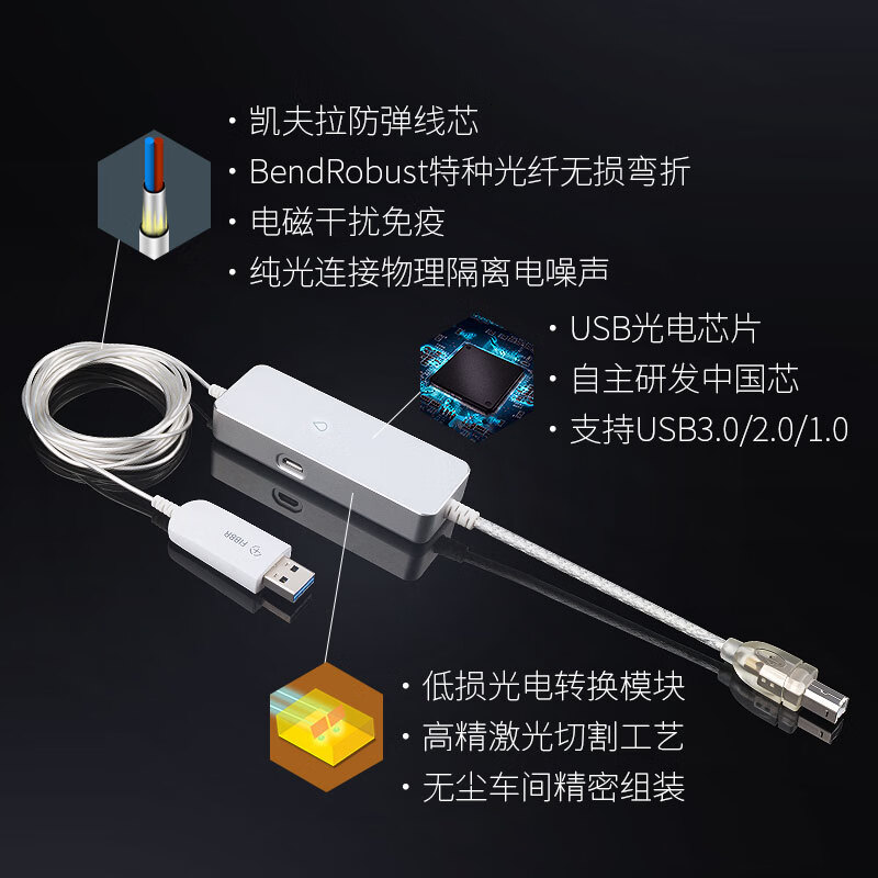 菲伯尔 FIBBR HI-FI方口USB A-B光纤数字音频线发烧级DAC功放数码DAC解码线数据线AlphaHiFi 银灰色 10米价格:2188.00元!