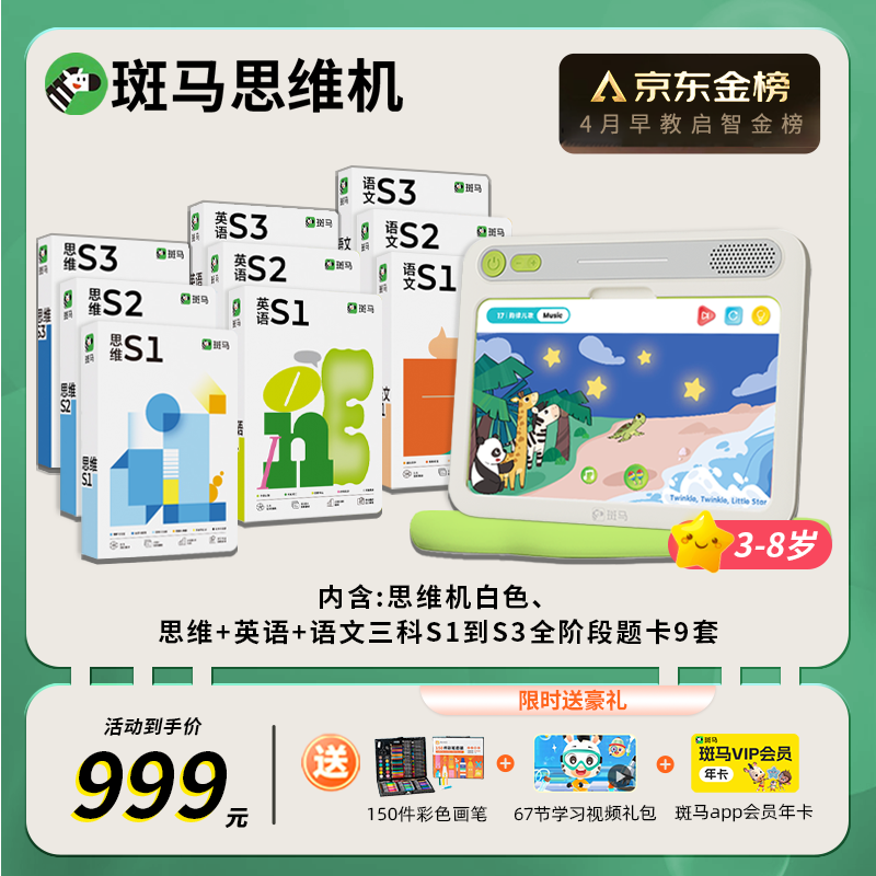 斑马思维机 语数英S1-S3阶段 点读早教学习机 3-8岁儿童玩具生日礼物价格:999.00元!