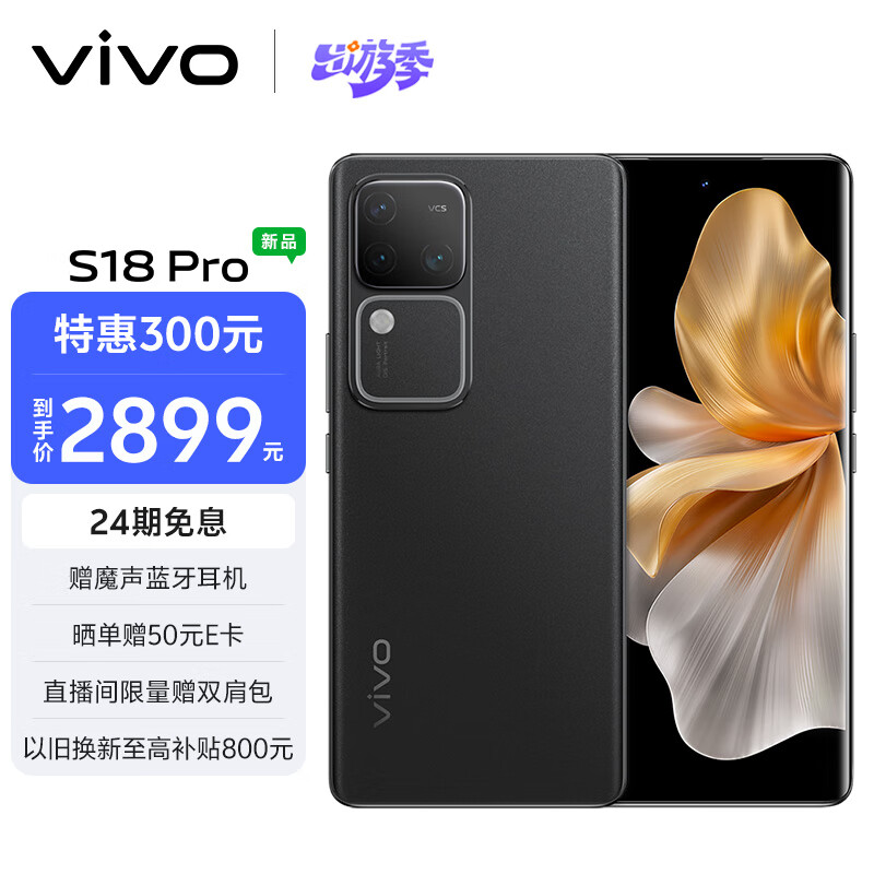 vivo S18 Pro 12GB+256GB 玄黑 天玑9200+旗舰芯片 后置影棚级柔光环 5000mAh超薄蓝海电池 拍照 手机价格:3199.00元!