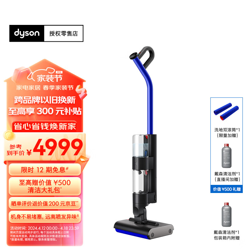 戴森(DYSON)WashG1洗地机 高效清洁除菌 自清洁家用洗地机 洗拖一体机 宠物家庭适用 WashG1价格:4999.00元!