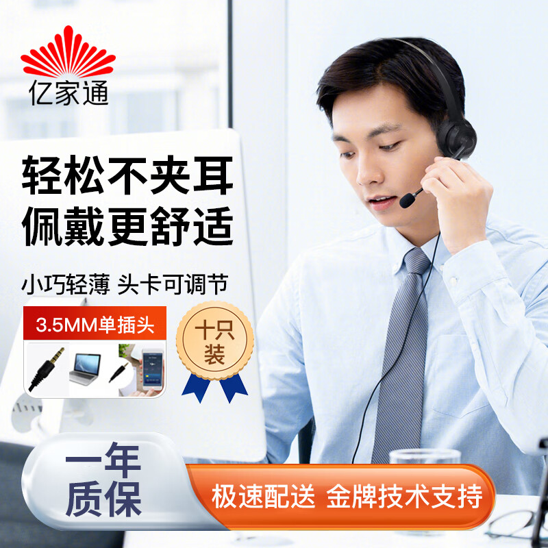 亿家通 单耳话务耳机Y300-3.5mm单插头 头戴式耳机/客服耳麦/降噪耳机/商务/教育 直连手机/电脑PC(10个装)价格:470.00元!