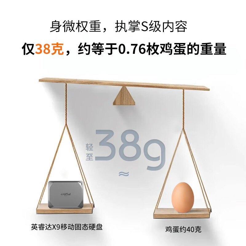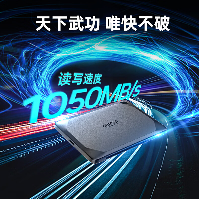 Crucial英睿达 美光 4TB 移动固态硬盘(PSSD)X9 Pro 传输速度1050MB/s 手机直连SSD IP55等级三防价格:2099.00元!