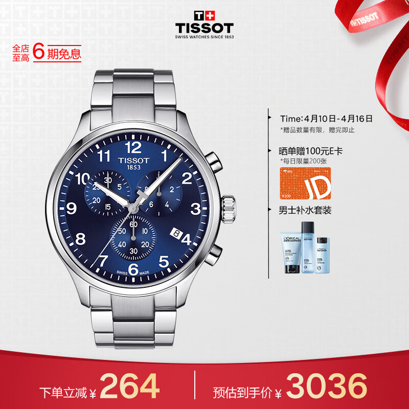 天梭(TISSOT)瑞士手表 速驰系列腕表 钢带石英男表 T116.617.11.047.01价格:3300.00元!