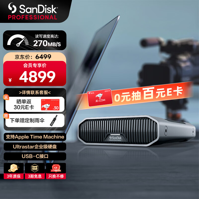 闪迪大师极客 18TB 企业级桌面移动硬盘 3.5英寸大容量 USB3.2 传输速度270MB/S 专业高速 手机直连价格:4899.00元!