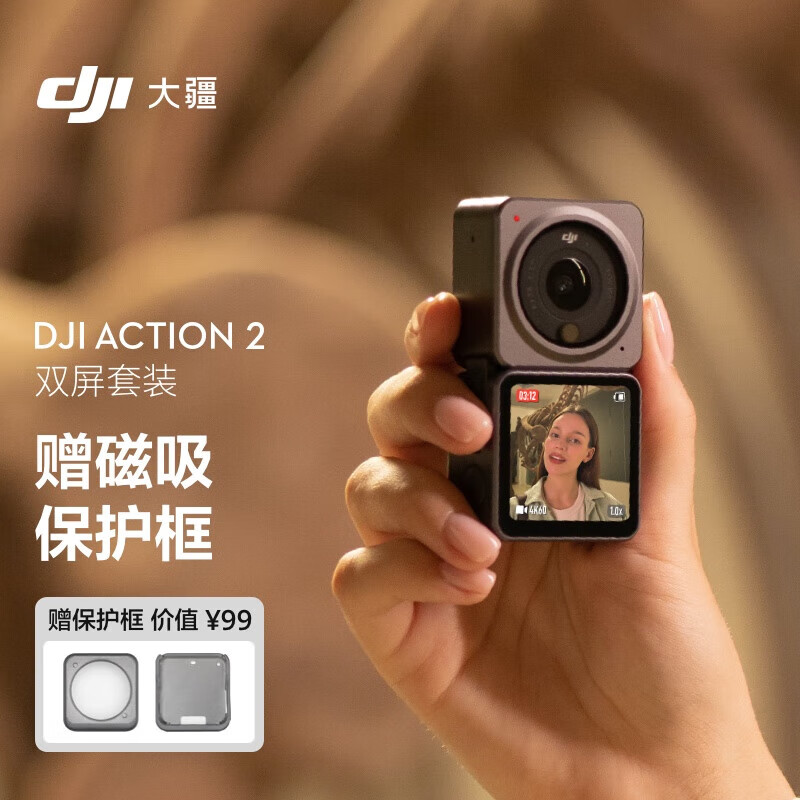 大疆 DJI Action 2 双屏套装(32GB) 灵眸小型手持防水防抖vlog相机 摄像机+随心换1年版+128G内存卡价格:2072.90元!