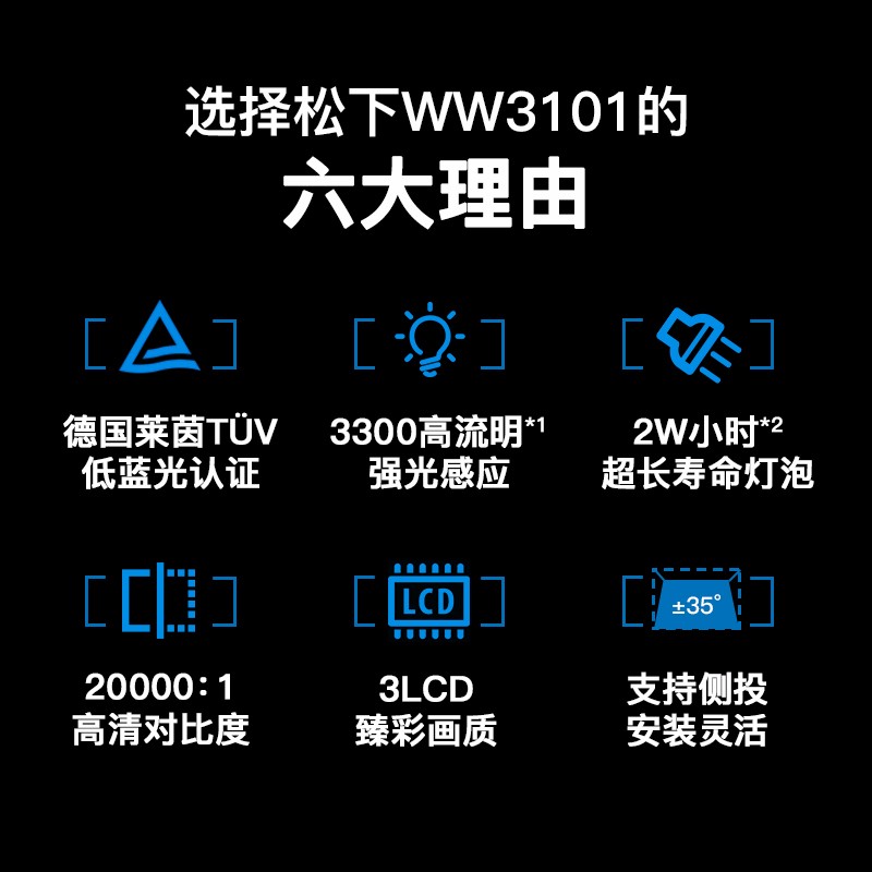 松下(Panasonic)PT-WW3101 投影仪办公家用家庭影院电视客厅卧室 培训会议专用(3300流明 白天直投 )价格:4199.00元!