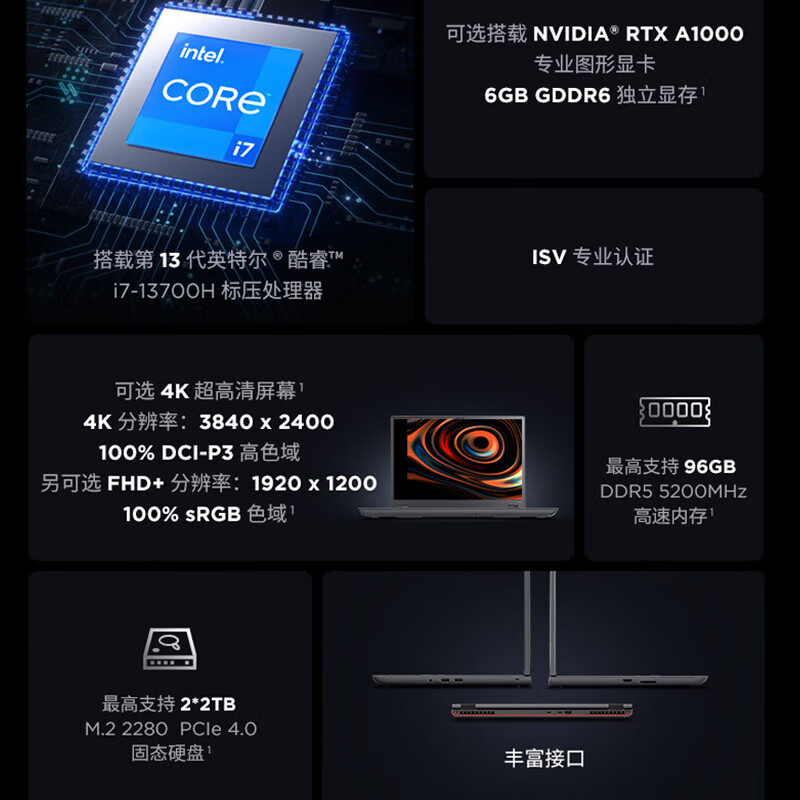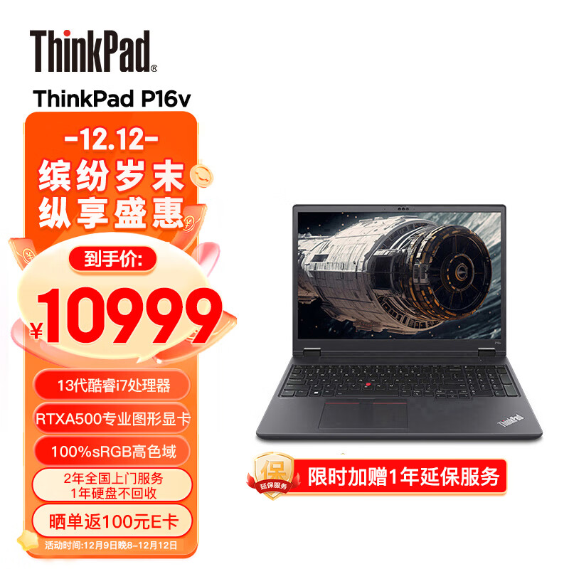 ThinkPadP16v 16英寸高性能设计师工作站13代酷睿i7-13700H 32G 512G RTX A500 高色域 商务办公价格:10999.00元!