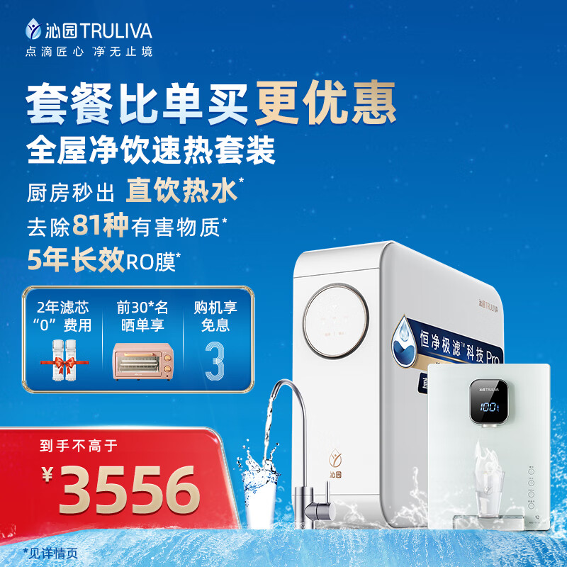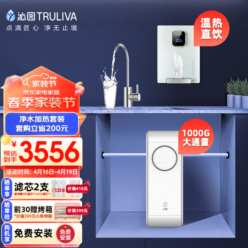 沁园(TRULIVA)小白鲸Pro1000G二件套装 净水器UR-S51046i+加热管线机LNW580-5W 加热净水器套装价格:3556.00元!