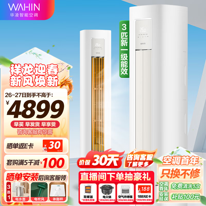 华凌空调3匹柜机 小冰棒 新一级能效变频冷暖 省电立式客厅卧室空调柜机 二代升级款KFR-72LW/N8HA1II价格:4899.00元!