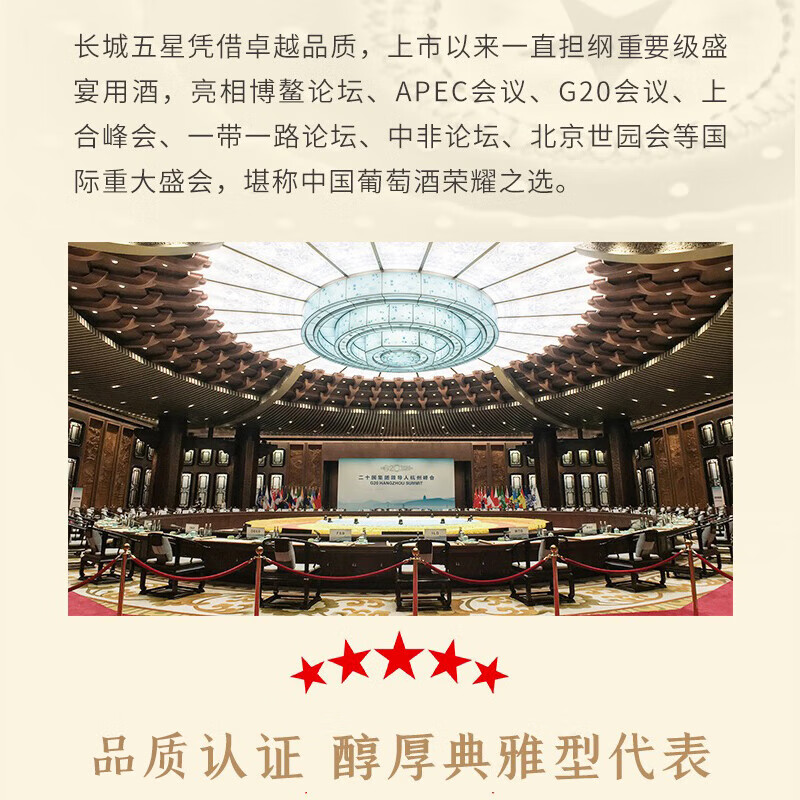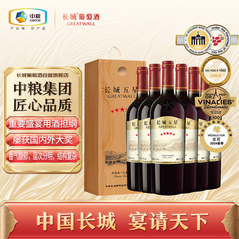 长城 五星赤霞珠 干红葡萄酒 750ml*6瓶 整箱装 木盒整箱价格:2132.00元!