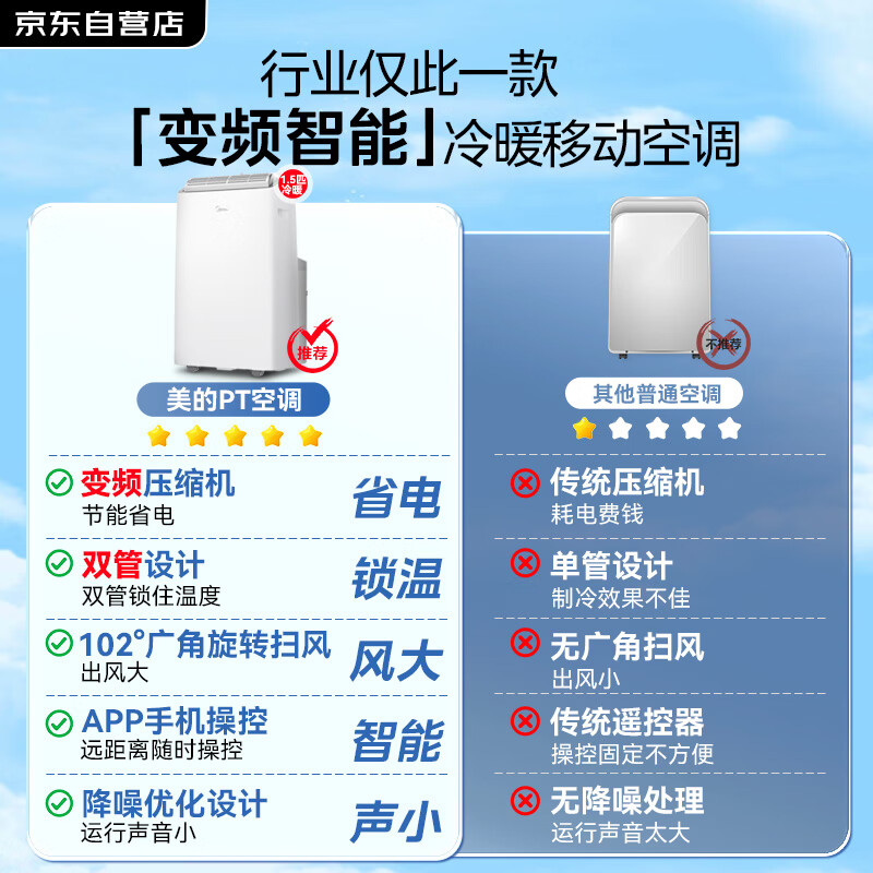 美的(Midea)移动空调冷暖1.5匹变频 京东小家智能生态 空调一体机免安装免排水 KYR-35/BP3N8Y-PT 京仓派送价格:2499.00元!