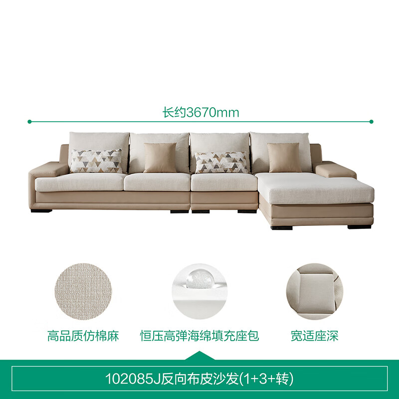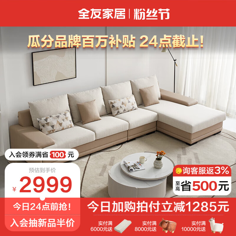 全友家居 现代简约布艺沙发家用大户型客厅实木架贵妃转角沙发102085价格:4284.29元!