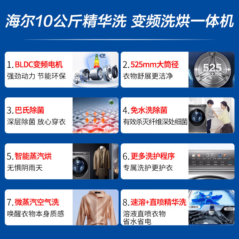 海尔(Haier)【精华洗】10KG滚筒洗衣机全自动大容量变频一级能效除菌螨智能投放+洗烘一体XQG100-HBD14326L价格:4299.00元!
