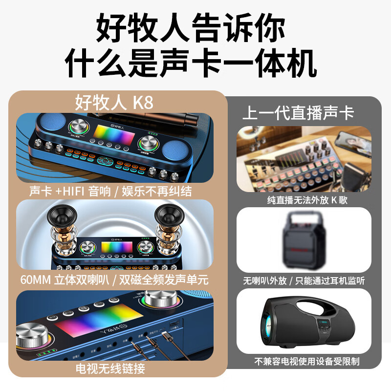 好牧人声卡直播设备全套装音响一体机无线麦克风电视话筒k歌家庭KTV蓝牙音箱抖音主播户外唱歌神器手机电脑价格:599.00元!