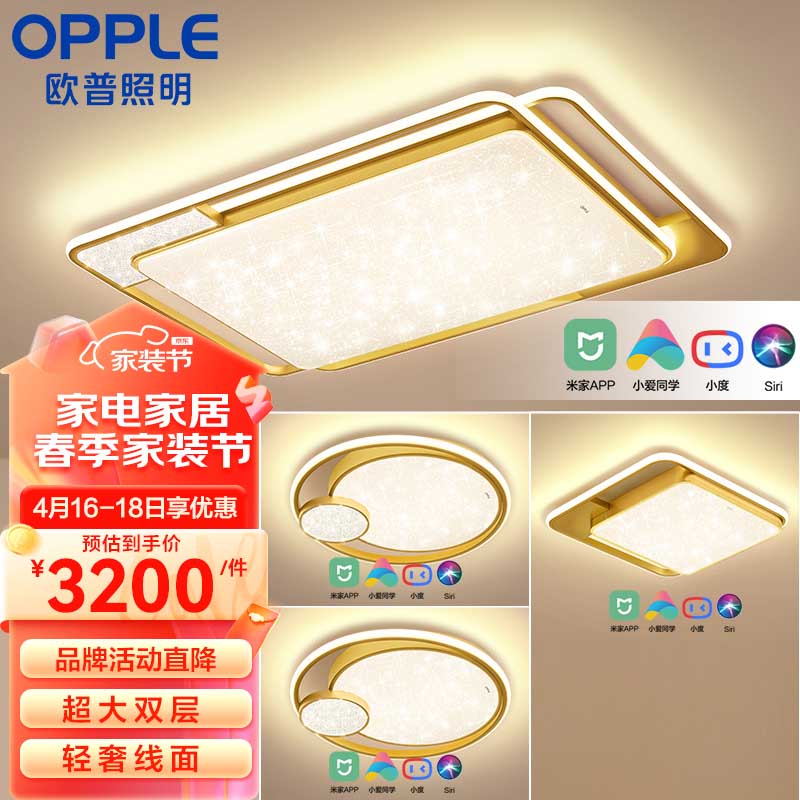 欧普(OPPLE)led吸顶灯灯具灯饰全屋套餐几何客厅卧室餐厅智能语音/智控调光价格:3200.00元!
