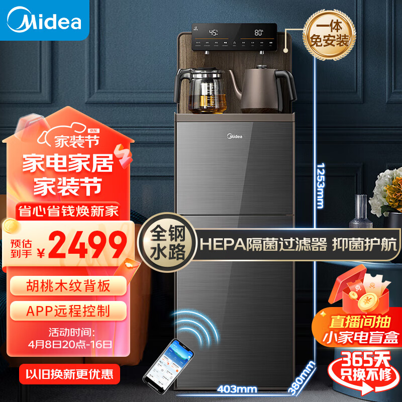 美的(Midea)智能语音茶吧机立式饮水机家用高端胡桃木纹免安装背板下置桶装水不锈钢管水路温热型YR1803S-X价格:2499.00元!