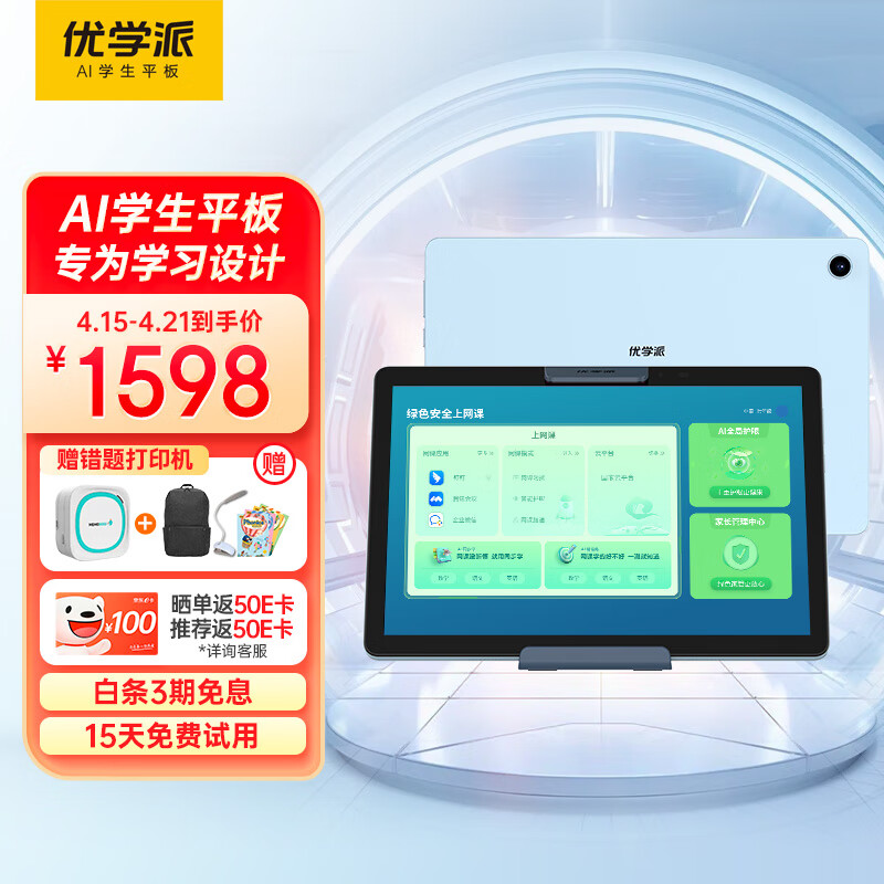 优学派学习机E16(128G)10.1英寸 护眼学生平板电脑 智能语音问答家教机小学初中高中辅导英语点读机 价格:1598.00元!