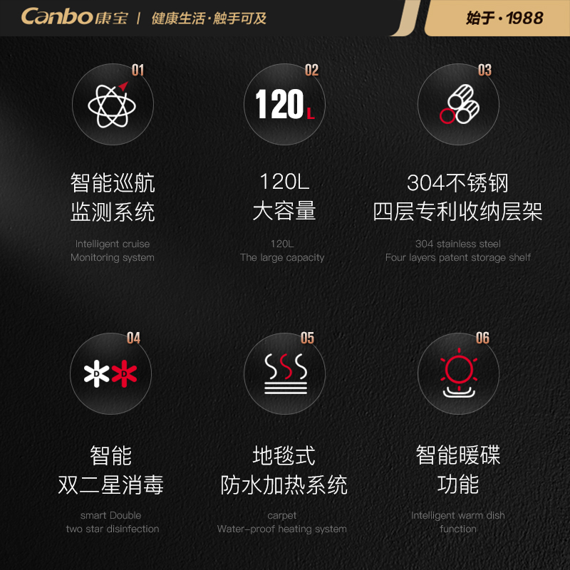 康宝(Canbo)智能四层 304不锈钢 砧板 消毒柜 嵌入式 家用 厨房餐具碗筷二星 消毒碗柜 XDZ120-EN910价格:3999.00元!