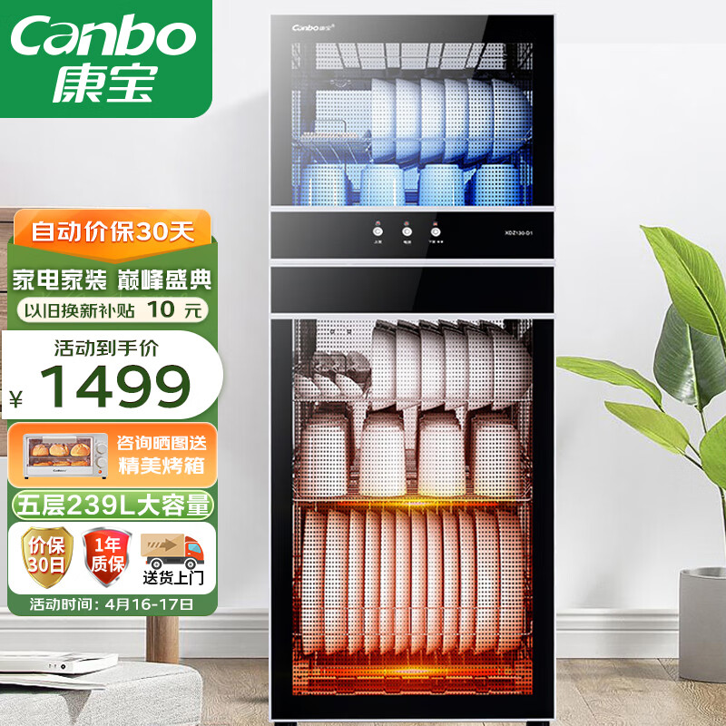康宝(Canbo)消毒柜 家用 立式消毒碗柜大容量 商用碗筷收纳柜餐具茶杯柜双门碗柜XDZ239-D1(ZTP350D-1)价格:1499.00元!