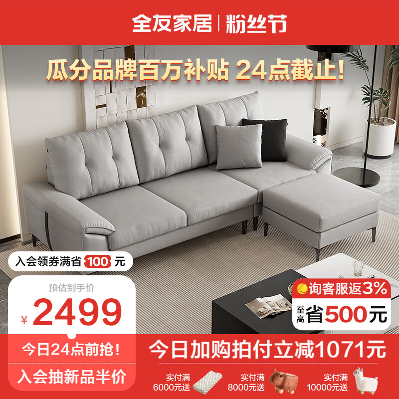 全友家居 科技布沙发客厅简约现代小户型直排式布艺沙发家用111037价格:3570.00元!