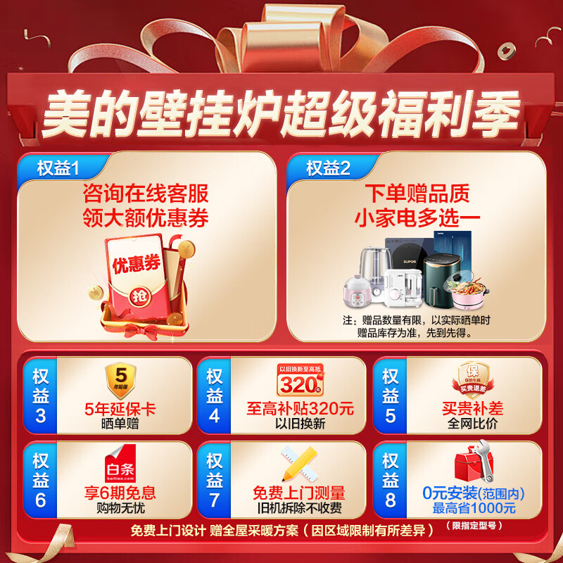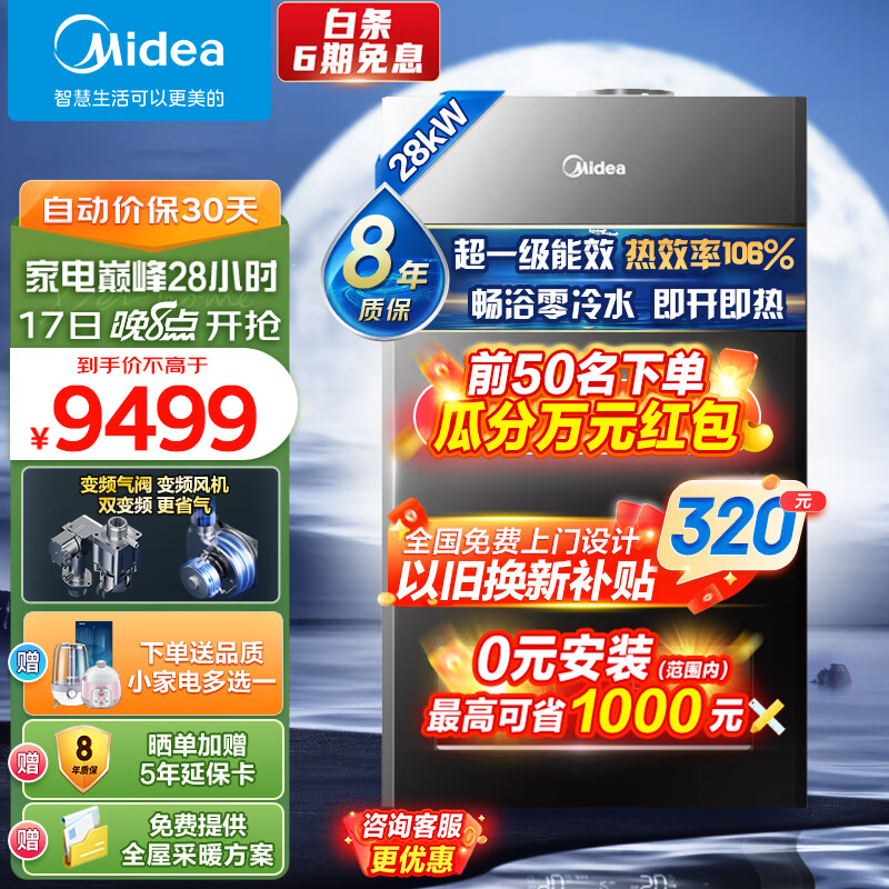 美的(Midea)双变频省气 一级能效 冷凝式增压零冷水燃气壁挂炉 天然气供暖 地暖采暖锅炉 LL1PBD28-R53 PRO价格:9799.00元!