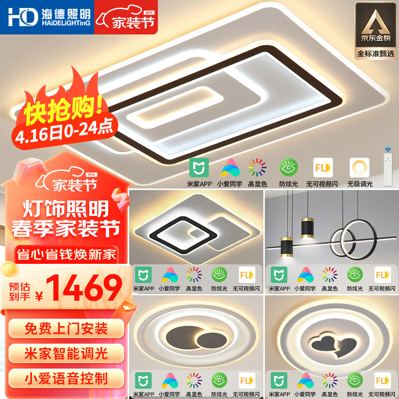 HD米家智能AI语音吸顶灯 led大客厅卧室全屋灯饰 包安装灯具套餐A价格:1469.00元!