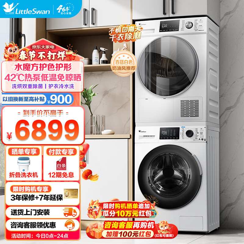 小天鹅(LittleSwan)洗烘套装 热泵烘干机洗衣机全自动家用10公斤白色水魔方除菌除螨智能家电 86+35价格:6899.00元!